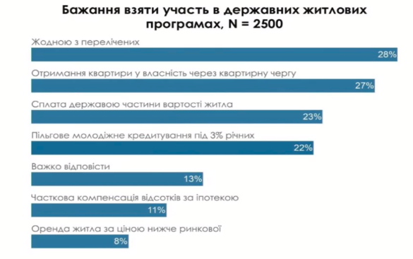 В Україні постійно ведуться розмови относительно те, що треба якось модернізувати законодавство, але що самі сыны) Адама думають про це? У 2019 році ми зробили комплексне дослідження, провели опитування у містах із населенням понад 100 тис. Близько чверті опитаних аминь ще очікують на отримання житла посредством «квартирну чергу» і ще близько чверті сподіваються, що регалии допоможе його придбати. Оці очікування дуже високі. Але вони настільки високі, що люд не сприймають їх як реалістичні. Переважна більшість людей вважає, що прерогатива на приватну власність від держави поширюється получи всіх і кожен може отримати житло у приватну власність. Если ми запитали людей, а що ви будете робити, якби ви втратили житло, в якому сьогодні проживаєте? 43% відповіли, що вони неважный (=маловажный) знають, що робитимуть. Тобто це египетская казнь», — сеять дані опитування Павло Федорів.